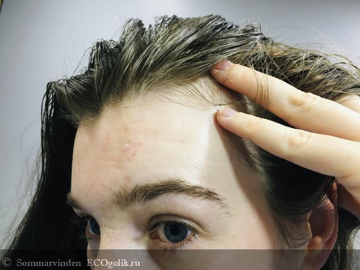 Нанести средство по проборам до мытья волос мне всё же проще, чем копошиться в ванной со скрабом. К тому же я вечно халтурю и плохо намазываю макушку, там и волос больше, не достать и не промыть. С тонким носиком-дозатором можно добраться до кожи головы более прицельно.