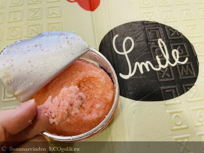 Так что скраб рекомендую, хоть и хотелось бы более яркого вкусного аромата и менее крупинистой консистенции.