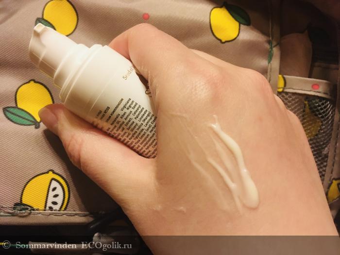 А вот ночная пахнет не очень вкусно, и этому виной те самые нестабильные масла с линолевой кислотой. Они пахнут рыбьим жиром, что для них в целом нормально, поэтому тут и помповый флакон, чтобы раньше времени не испортились. Не совсем приятный аромат, но потом я принюхалась, а на коже вообще не ощущается. Даже больше скажу: в средствах с такими маслами, которые так не пахнут, скорее всего, и масел положили в мизерном количестве, а то и забили просто аромат отдушками.