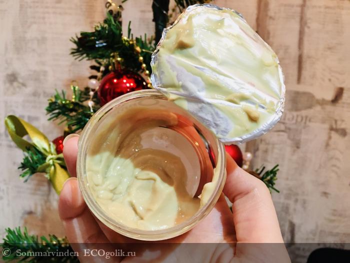 Маска заявлена как питательная в первую очередь и подходящая для сухого типа кожи. Вторым свойством заявлена нежная эксфолиация, выравнивание рельефа кожи и осветление пигментных пятен. Кроме того, входящий в состав ниацинамид должен бороться с воспалениями и даже помогать от купероза. Впервые вижу, что на маске указан уровень pH 5,5 (на той стороне банки, что не попала на фото).