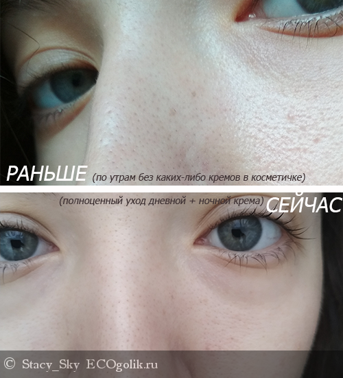 На утро жирности нет и в помине (а у меня достаточно жирная Т-зона). В принципе даже не скажешь, что использовался какой-либо крем. Да здравствует свежая, отдохнувшая кожа!