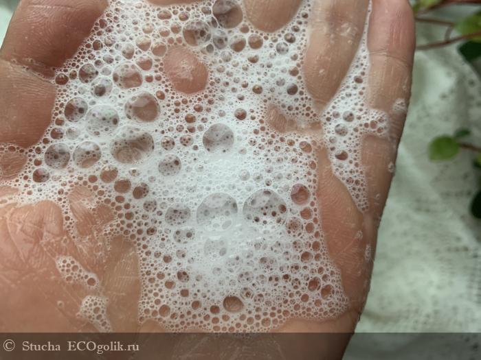 Гель пенится сразу, причем пенка от него мягкая мягкая, ее много. Я взбиваю ее в ладошках, а потом наношу. Очищение настолько деликатное, что нет чувства стянутости или дискомфорта, никакого раздражения или изменения микрофлоры замечено не было. Только чистота и свежесть!