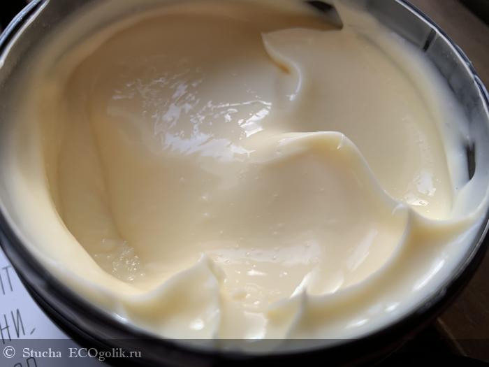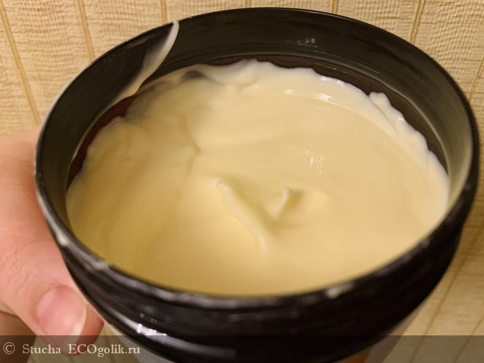 Консистенция средства нежнейшая - это приятная взбитая масса, что-то среднее между сливками и флюидом и ещё немного масел; на коже ложится тонким слоем, хорошо смягчает, ухаживает за ней. Такая консистенция подходит после ванны, когда хочется укутать себя тонким слоем крема, чтобы не перегружать кожу.
