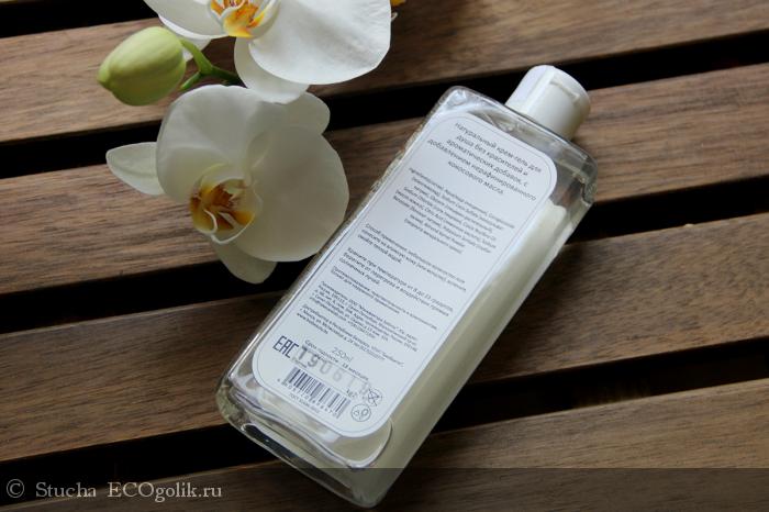 Я попросила гель без всяких красителей и ароматов, потому что люблю или что-то сладкое (но в шоколадном эфирное масло гвоздики и пачули, а их я не очень люблю) или нейтральное. В нашем случае это еле-еле уловимый кокос, аромат ну точь-в-точь если разрезать кокос и понюхать молочко или мякоть, ну еще немного аптечного запаха.
