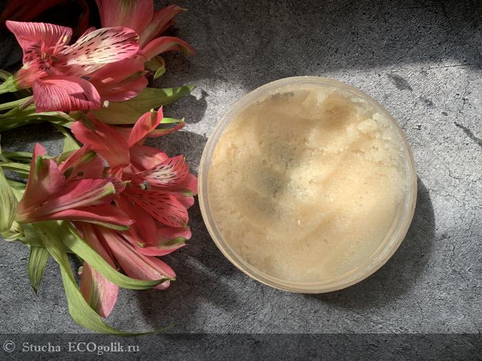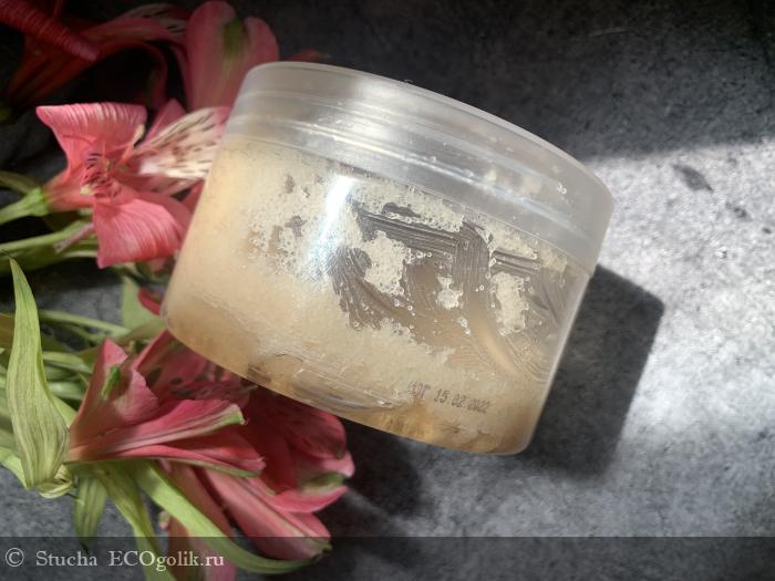 Хочу заметить, что со временем масло немного опускается на дно и тогда скраб надо перемешать перед использованием. Но в целом консистенция не меняется, все такая же нежная.