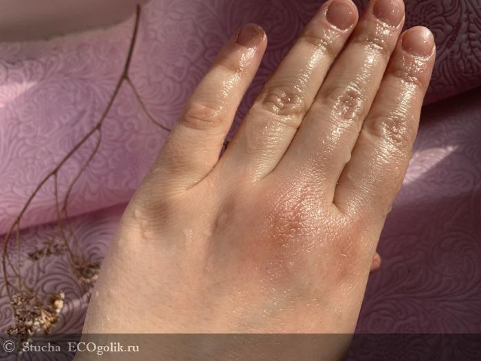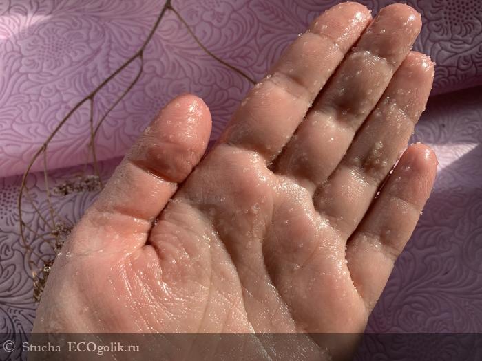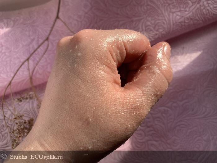 Моя сухая кожа благодарна такому уходу. Единственный момент - если вы скрабируете им пятки, не спешите вставать на скользкий пол.