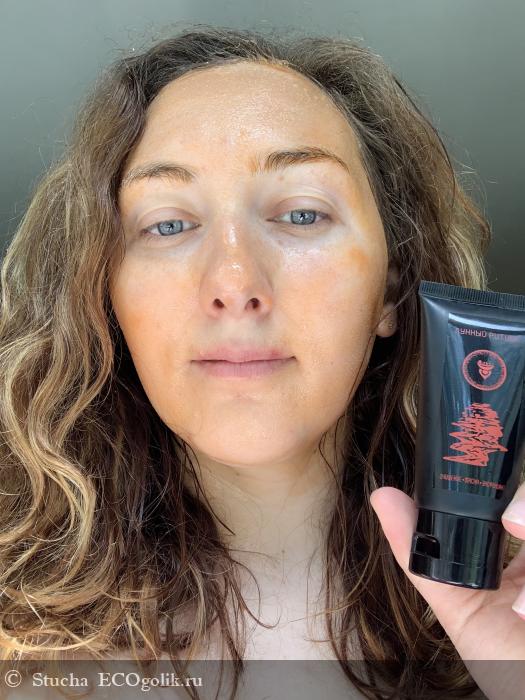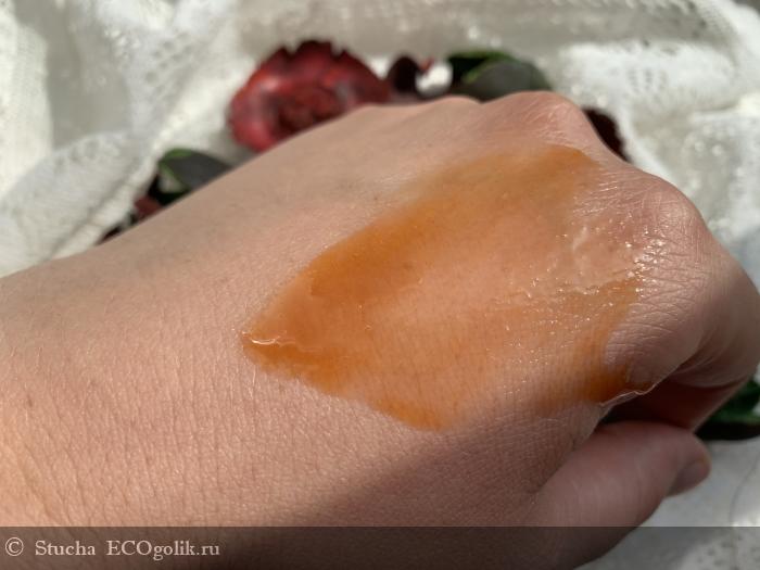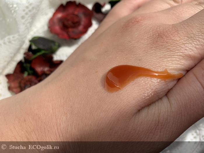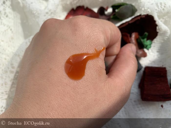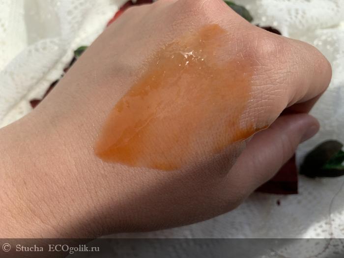 Упаковка выглядит и эстетично и удобно для такой консистенции - средство густое, медовое, насыщенного бордово-оранжевого цвета. Есть мелкие вкрапления - как мыль, которые выступают в качестве скрабирующих частиц. У меня кожа тонкая, поэтому я не тру лицо, а просто держу бальзам на лице и аккуратными массирующими движениями смываю.