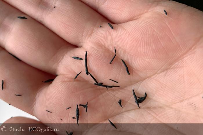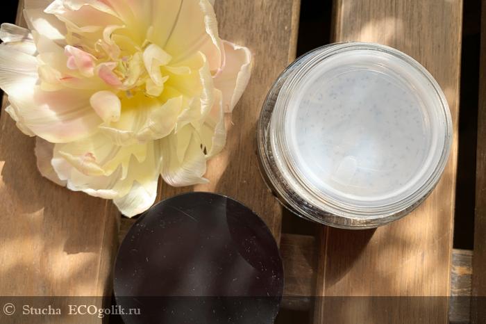 Внутри маска белая с вкраплениями черного цвета. Это угольные сферы, который при нанесении маски растворяется. Таким образом она становится черной на лице. Лучше всего наносить ее пальцами, так сферы растворяются, а вот кисть не всегда их растирает полностью и они так и остаются шариками.