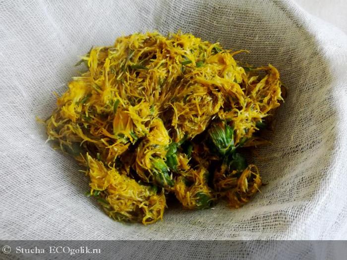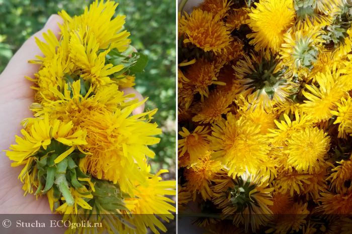 Чтобы вытряхнуть всех жучков из одуванчиков, положите их на газету и хорошенько перемешивайте. Я три раза перебирала цветочки, пока вся живность их не покинула. Затем замочить на 1 час их в холодной воде, оборвите снизу все зеленые части, они дают горечь.