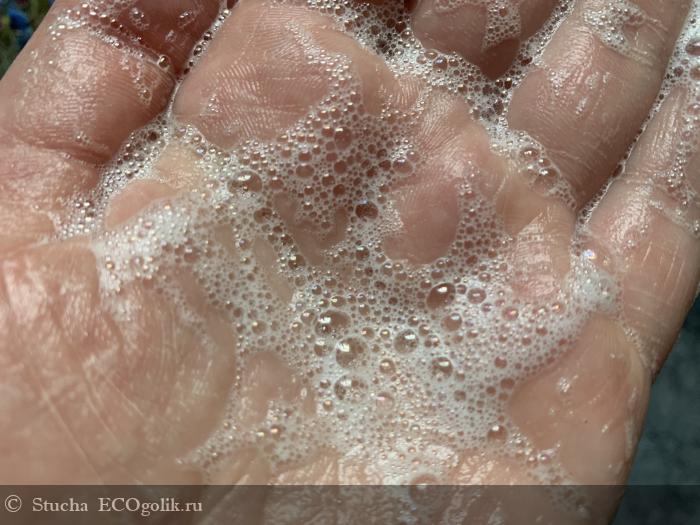 На мокрое лицо нанесение вспененную в ладошках пудру, слегка помассируйте лицо и смойте водой.