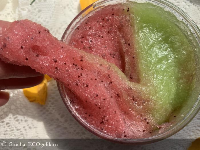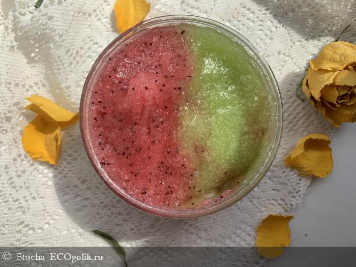 На тестирование нового для меня бренда я выбрала один из самых топовых продуктов - арбузный скраб. В живую он оказался еще лучше, чем на картинке.