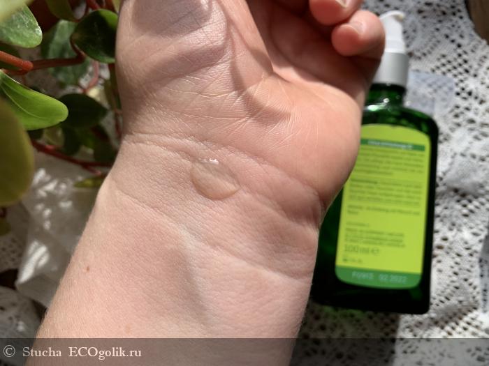 Внутри красивущий флакон из плотного зеленого стекла. Дозатор удобный, закручивается хорошо и никаких протечек сбоку не случается. Выдавливает нужную порцию.