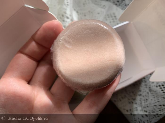 Шампунь розового цвета, средний по плотности - при эксплуатации не расползается, не крошится и не ломается. С весны у меня лежит в открой баночке и с ним все в порядке.