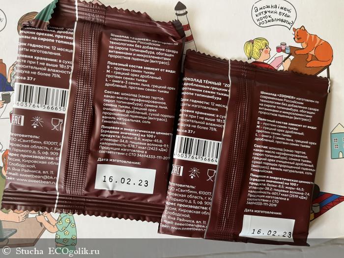 Шоколад ZOOMER L на сиропе топинамбура с омега-3 семян льна, протеином семян тыквы и дробленым грецким орехом Sweet Bean