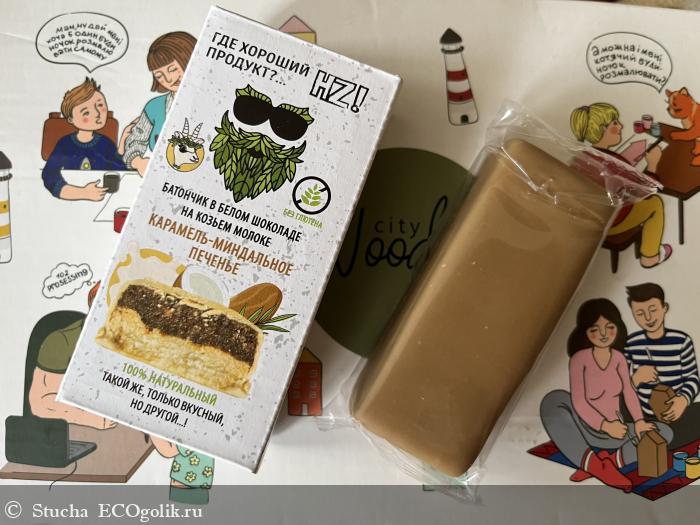Батончик в белом шоколаде на козьем молоке "Карамель-миндальное печенье"