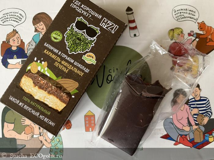 Батончик в горьком шоколаде "Карамель-миндальное печенье"