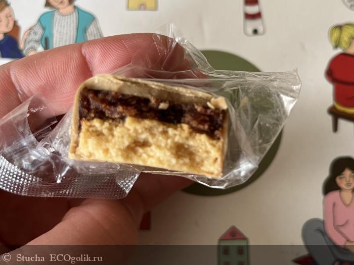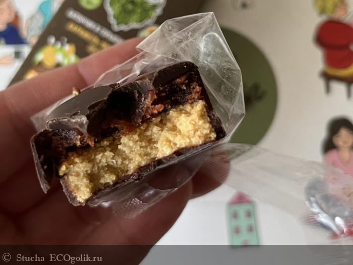 В основе финиковая паста, но вкус очень непривычный в хорошем смысле: много орехов и плотная оболочка из вкусного шоколада делают их похожими на протеиновые сладости, только тут качество на порядок выше! Интересно, что там есть слой печенья.