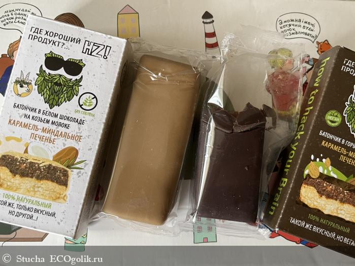 Батончики шикарно выглядят - очень интересные упаковки, дизайн стильный. Упаковано качественно - плотная картонная коробочка, а внутри батончик в пленке.