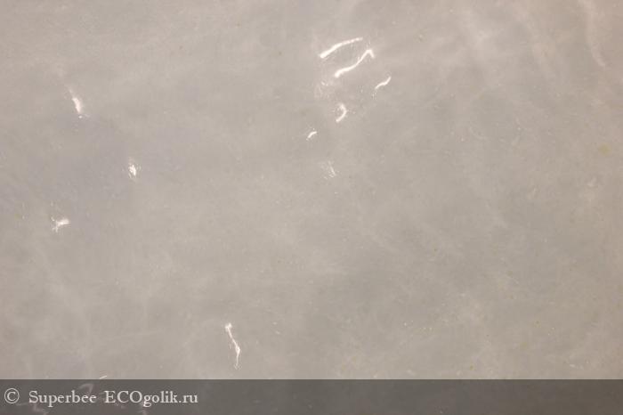 Как видно по фото сразу же после того, как я вылила эссенцию в воду, она лежала крупными маслянистыми пятнами на ее поверхности, а после перемешивания масло практически полностью растворилось в воде.