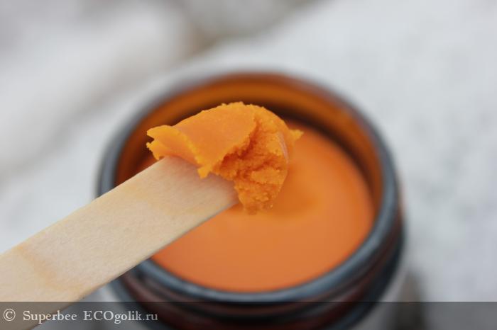 Крем насыщенного оранжевого цвета, очень плотной консистенции, практически как масло.