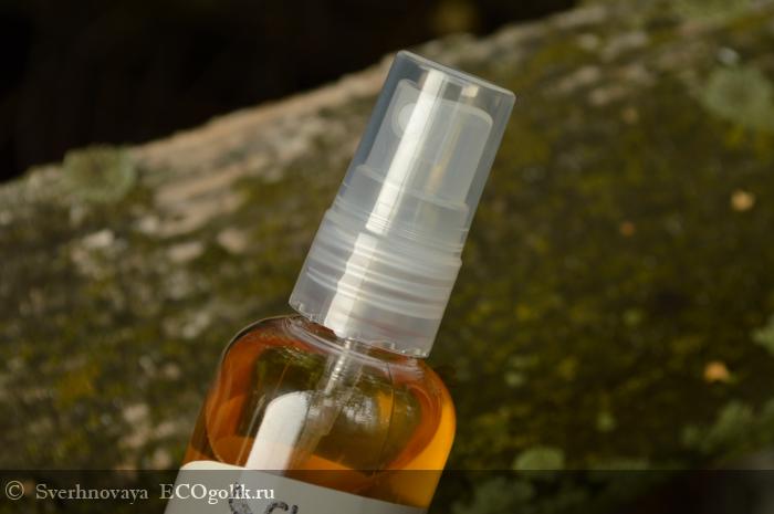 Флакон оснащен дозатором-пульверизатором, и это огромный плюс. Однажды, у меня был гидролат другого производителя без распылителя... и мне пришлось знатно повозиться, чтобы сделать его для удобным и экономичным в использовании.