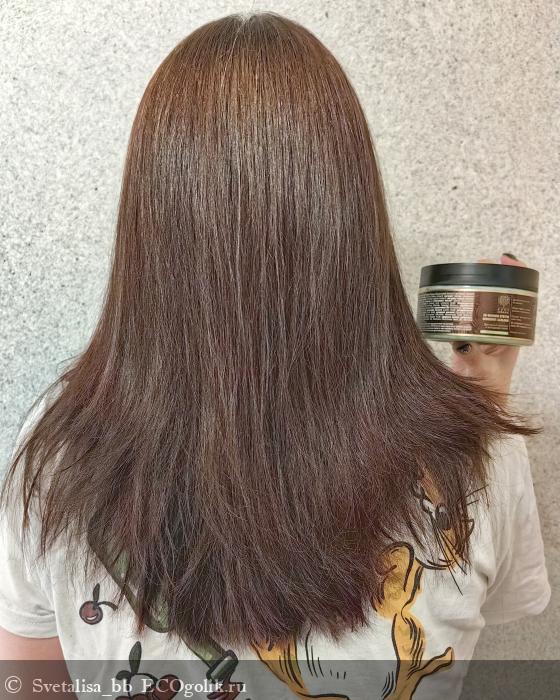 Такой уход весьма неплох после окрашивания волос хной. И в принципе, если волосы суховаты - самое то. У меня длина как раз такая.