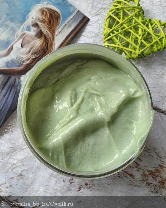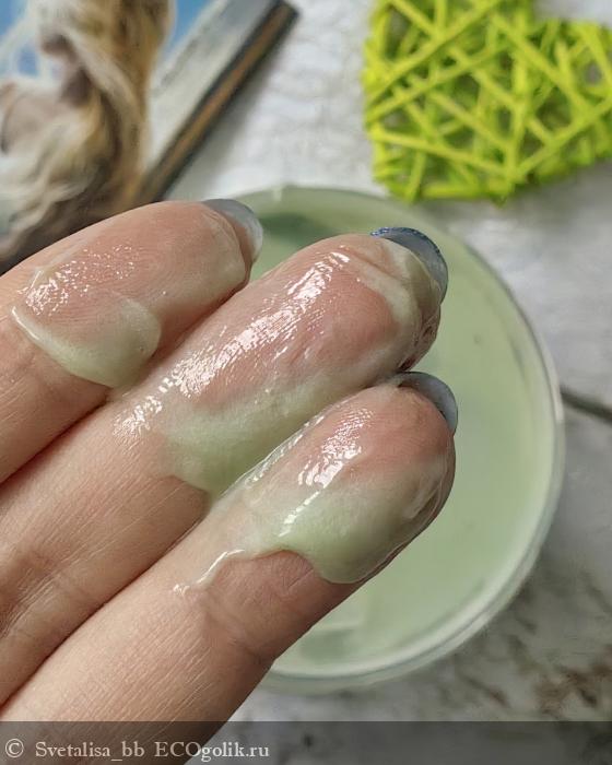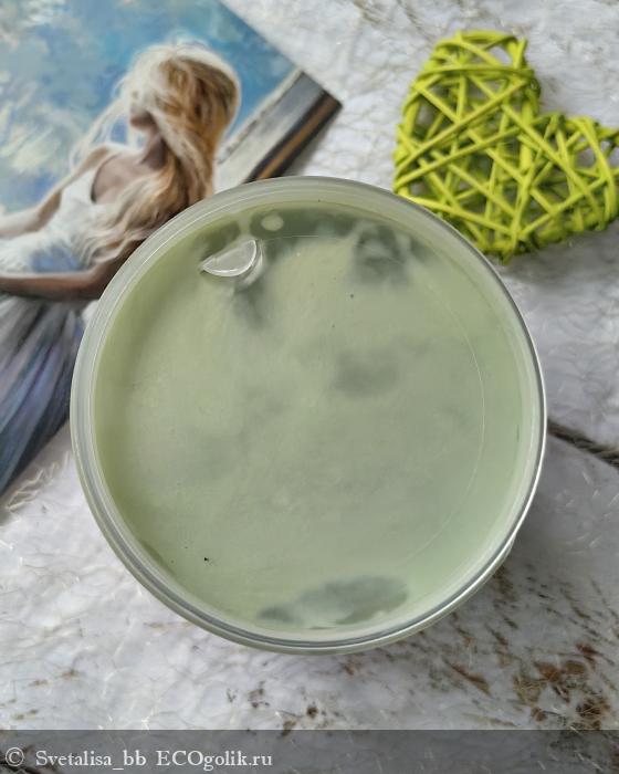 Само средство средней густоты, кремовой консистенции. По цвету зелененькое: