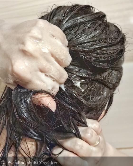 А если есть необходимость (у меня например корни склонны к жирности), то корни можно например пилингом заранее очистить и тогда вообще никаких проблем с ковошингом нет. Я этим средством вполне довольна.