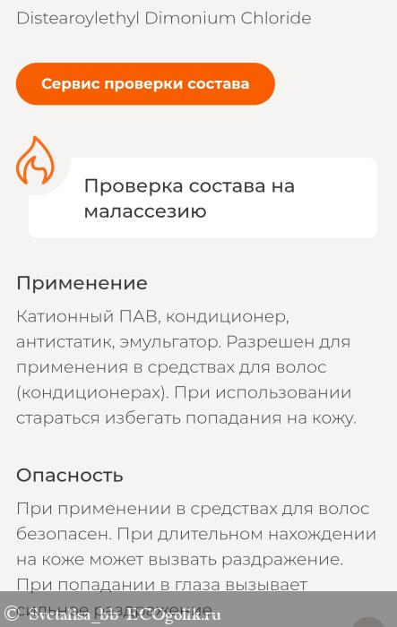 Кондиционер: дистеароилэтил димониум хлорид | Distearoylethyl Dimonium Chloride: