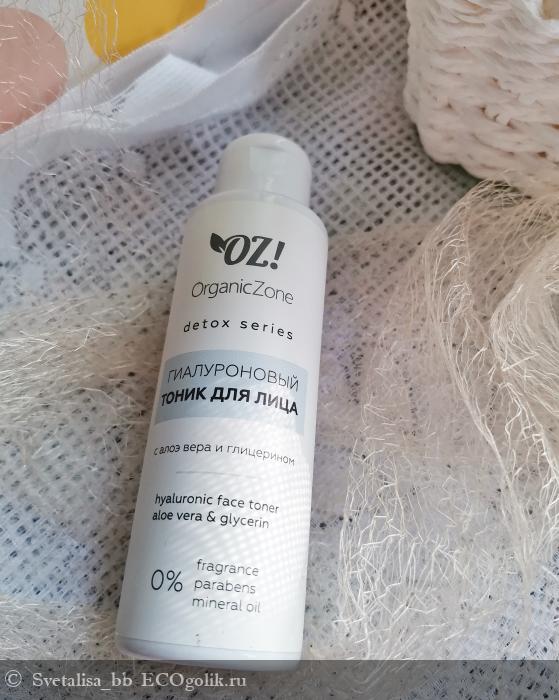 Гиалуроновый тоник для лица из линейки - Detox Series с алоэ вера и глицерином от "Organic Zone" оказался у меня весьма кстати. И ушёл он довольно быстро. Возможно потому, что я применяла его совместно с ватными дисками.