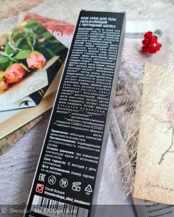 И я продолжаю изучать линейку ухода "Rose" от бренда "Мастерская Олеси Мустаевой" и следующим на очереди стал крем для тела увлажняющий с пептидами шёлка.