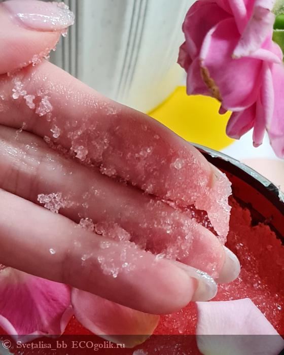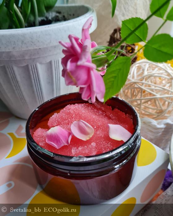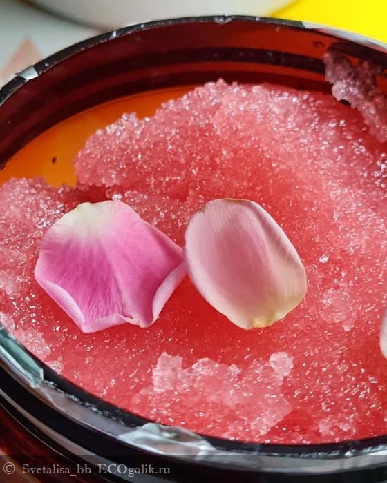 Аромат розы кстати пропадает практически сразу после смывания скраба. И тут даже чуточку обидно, однако скорее это говорит о его натуральности.