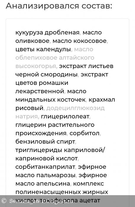 Состав: вполне себе чистый и хороший. Не распозналось масло облепихи и децил глюкозид (ПАВ).