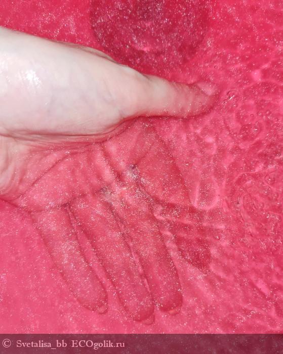 При добавлении в ванну вода приобретает приятный красный оттенок.