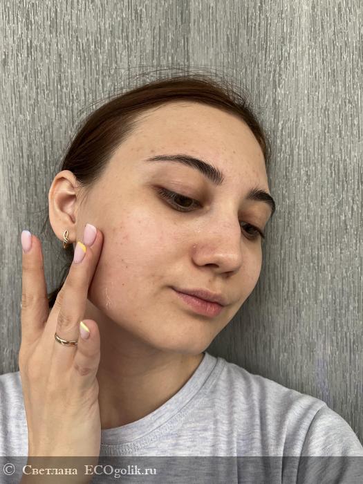 Средство не вызвало у меня каких-либо аллергических реакций на коже. Не ложится плёнкой и не стягивает лицо. Улучшает эластичность кожи.