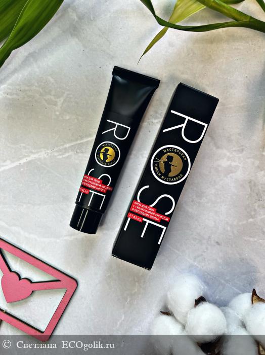 Полное название: Крем для лица Rose с гиалуроновой кислотой и пептидами шелка. Бренд «Мастерская Олеси Мустаевой».