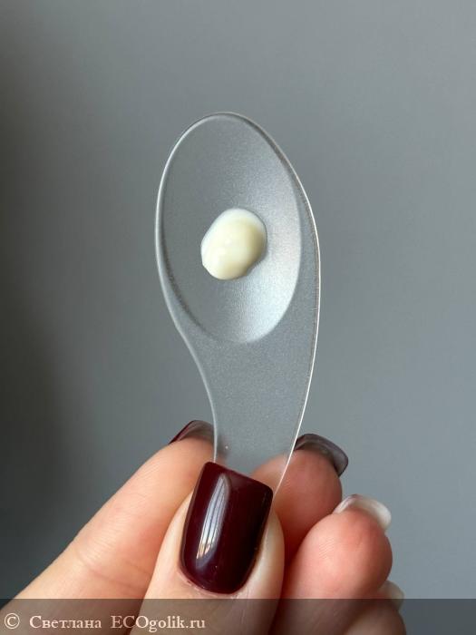 О текстуре: Крем обладает невесомой текстурой светло-коричневого оттенка, слегка с желтым подтоном.