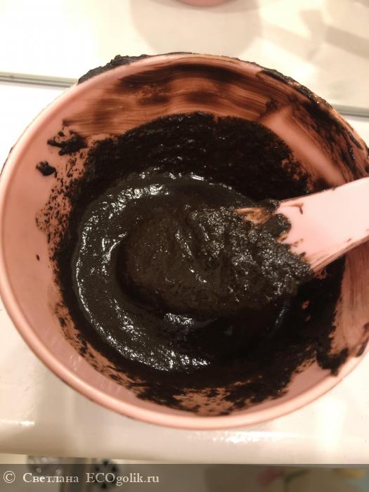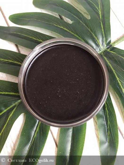 О текстуре: Маска больше похожа на шоколадное масло для бутербродов, текстура маслянистая, тёмного цвета и имеет пузырьки.