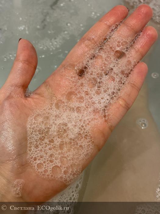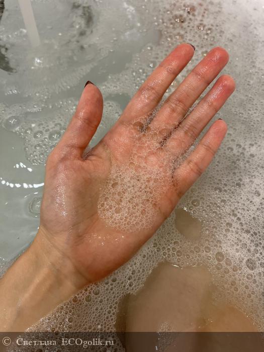 - Содержит уровень pH 6,1, который отлично походит для всех типов кожи. У меня сухая, но при использовании дополнительного кожу полученная пена не сушит.