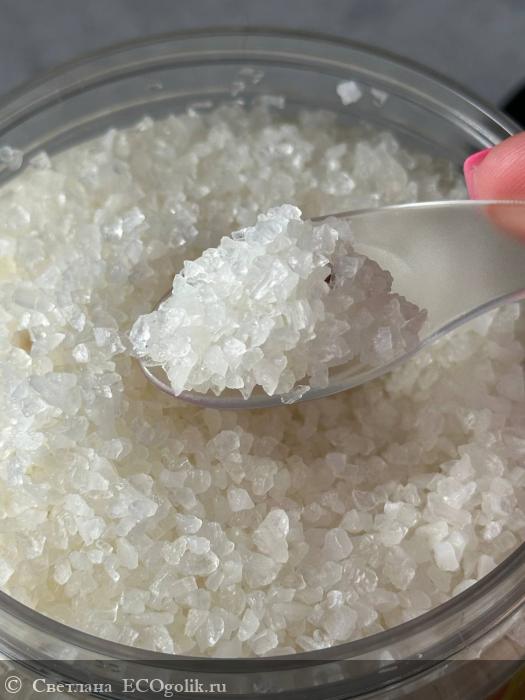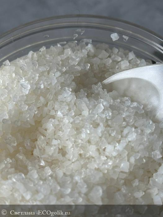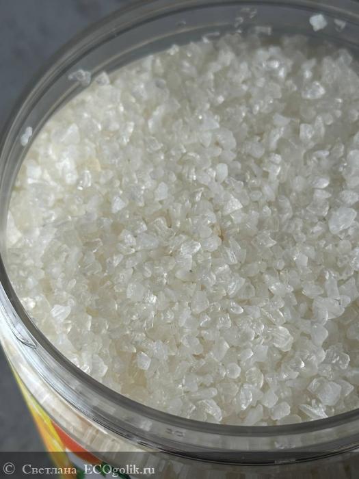 О текстуре: Внутри соль для ванны бело-прозрачного оттенка.