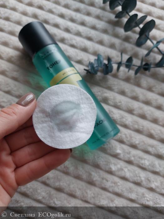 Наношу тонер на ватный диск и протираю им предварительно очищенную кожу от макияжа. Тонер легкий, хорошо снимает остатки макияжа и грязи, которые не смогли осилить мицеллярная вода и пенка для лица. Кожа после применения свежая, как будто я использовала не тоник, а маску для лица!