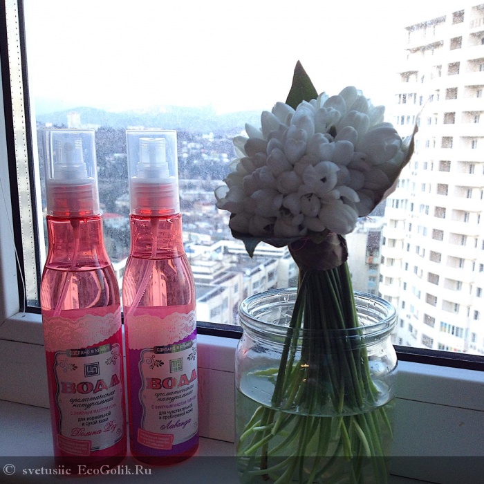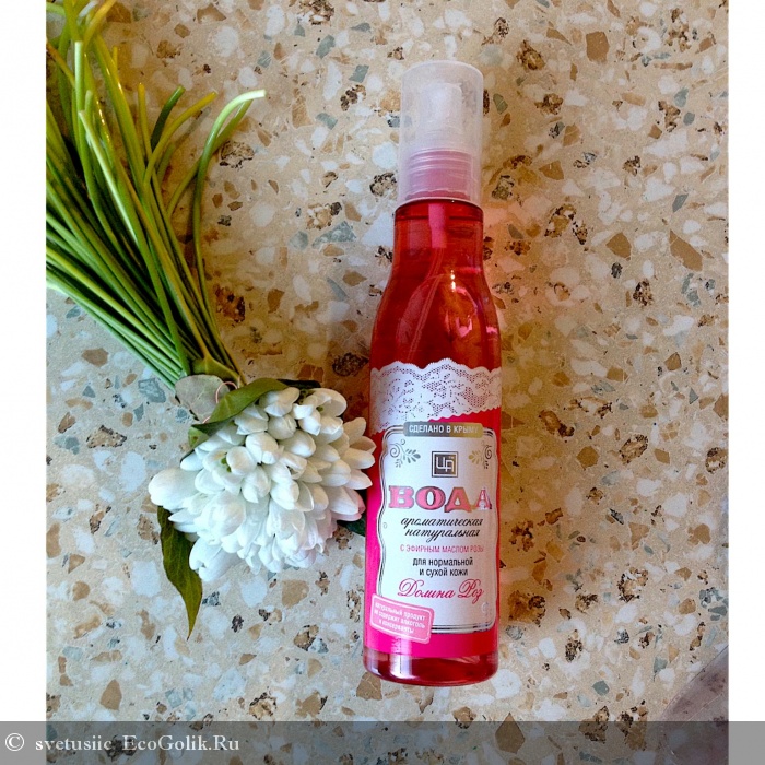 В общем и целом с основными своими задачами розовая вода справляется. Особенно она хороша для сухой кожи, а в зимнее время лично у меня в определенных зонах лица она сухая, и благодаря обильному увлажнению с помощью крема и цветочных вод, мне удается справляться с шелушением если оно появляется.