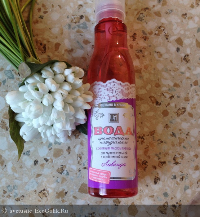 Цветочная вода "Лаванда" Использовала воду в вечернее время на кожу лица и шеи. А также иногда распыляю на волосы заменяя аромарасчесывание с эфиркой лаванды, исключительно в целях экономии)). Что касается кожи лица и шеи, то вода прекрасно действует, полностью справляется со своими задачами. После скрабирования кожи или пилинга, отлично успокаивает кожу и снимает раздражение. Ну и как цветочная вода розы также увлажняет кожу. На волосах я не заметила ни какого эффекта , кроме как эффекта мокрых волос)).