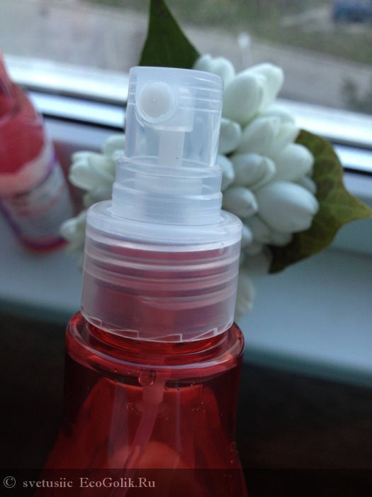 Упаковка: Пластиковый флакон с распылителем. Качество пластика хорошее. Но именно в упаковке я не довольна этими продуктами. На мой взгляд косметика содержащая эфирные масла должна выпускаться в стеклянной таре и желательно из темного стекла, по сути также как и собственно говоря эфирные масла. Потому как, только в такой таре эфирные масла входящие в состав средства будут сохранять свои полезные свойства. И еще один не значительный минус в плане упаковки, это не микро-распыление. все таки мне есть с чем сравнить особенно что касается гидролатов. Мне очень нравится механизм распыления гидролатов у компании Iris, и теперь я постоянно сравниваю упаковки гидролатов именно с этой маркой, так как у них идеальная тара.