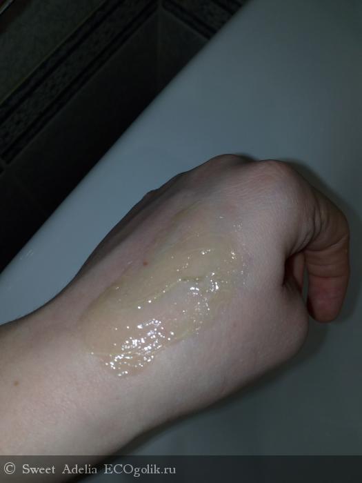Но,казалось бы,масляный вид геля,который после контакта с водой,превращает в молочко,должен увлажнять,но он наоборот - подсушивает.Не сильно,кожу не стягивает,но все равно не приятно.