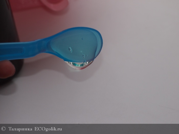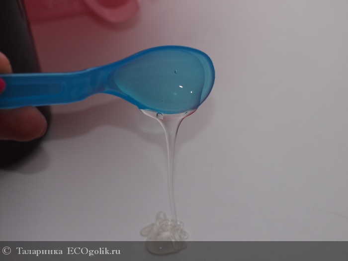 По консистенции шампунь напоминает достаточно густой гель, цвет его прозрачный. Густота — отличное качество шампуней, никогда не выдавишь на руку больше, чем тебе самой хочется. А хотелось в первый раз мне очень много! Но можно использовать его гораздо экономнее.