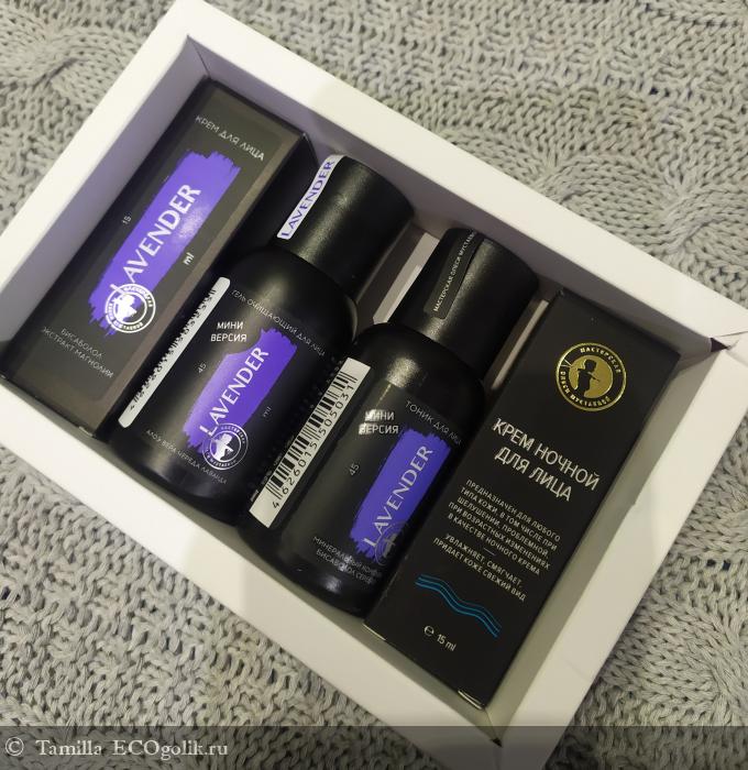 В составе набора: очищающий гель для лица, тоник, крем для лица Lavenderи крем ночной для лица. Отличный набор, особенно для знакомства самое то! Получила положительные эмоции и уже перешла на большие варианты.