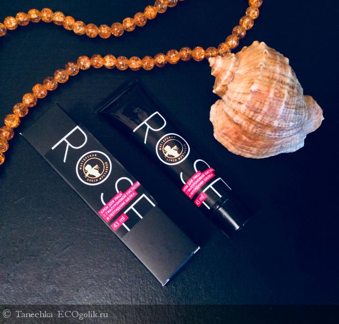 Третьим героем отзыва будет Rose крем для лица с гиалуроновой кислотой и пептидами шелка.