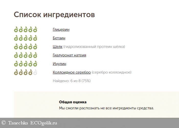 Не распознаны два компонента: соль пирролидоновой кислоты и натриевая соль глутаминовой кислоты. Насколько я поняла, это безопасные компоненты.