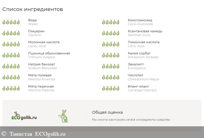 Состав – идеален! При проверке на сайте каждый компонент получил по пять «яблочек». Правда, почему-то не распознался экстракт элеутерококка, но, думаю, здесь проблем нет.